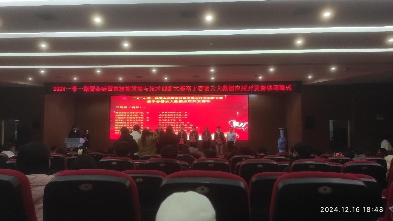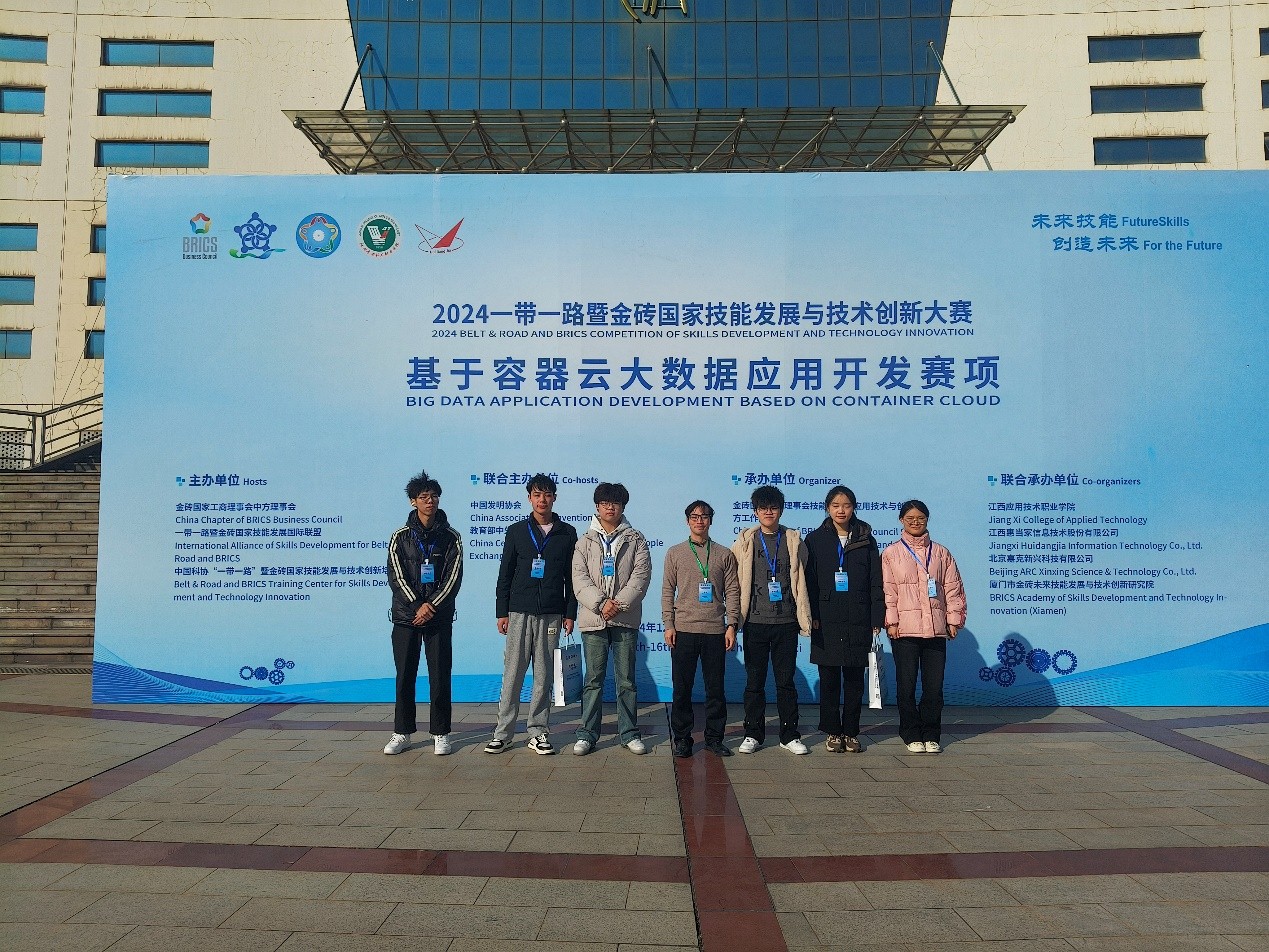 (信息工程学院 陈刚讯)2024年12月17日,信息工程学院大数据技术教研室的23级学生李灿、黄玉坤、程飞帆组成的1队,以及史尚、曾鹏飞、陈铖组成的2队,在陈刚和董慧慧老师的精心指导下,凭借坚韧不拔的意志和卓越的团队合作精神,在2024年一带一路暨金砖大赛的“基于容器云大数据应用开发”赛项中双双斩获三等奖。这一成就不仅为学校赢得了荣誉,也展现了我院学子在大数据技术领域的专业实力和竞技风采。