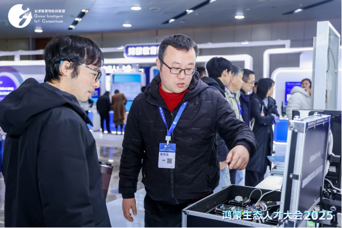 大会现场,陈刚老师深入企业展区,与多家鸿蒙生态企业围绕技术开发、实践教学、人才供需等议题展开交流,详细了解企业在鸿蒙应用场景中的技术需求与岗位标准,为后续推进校企协同实训、项目合作积累了实践资源。