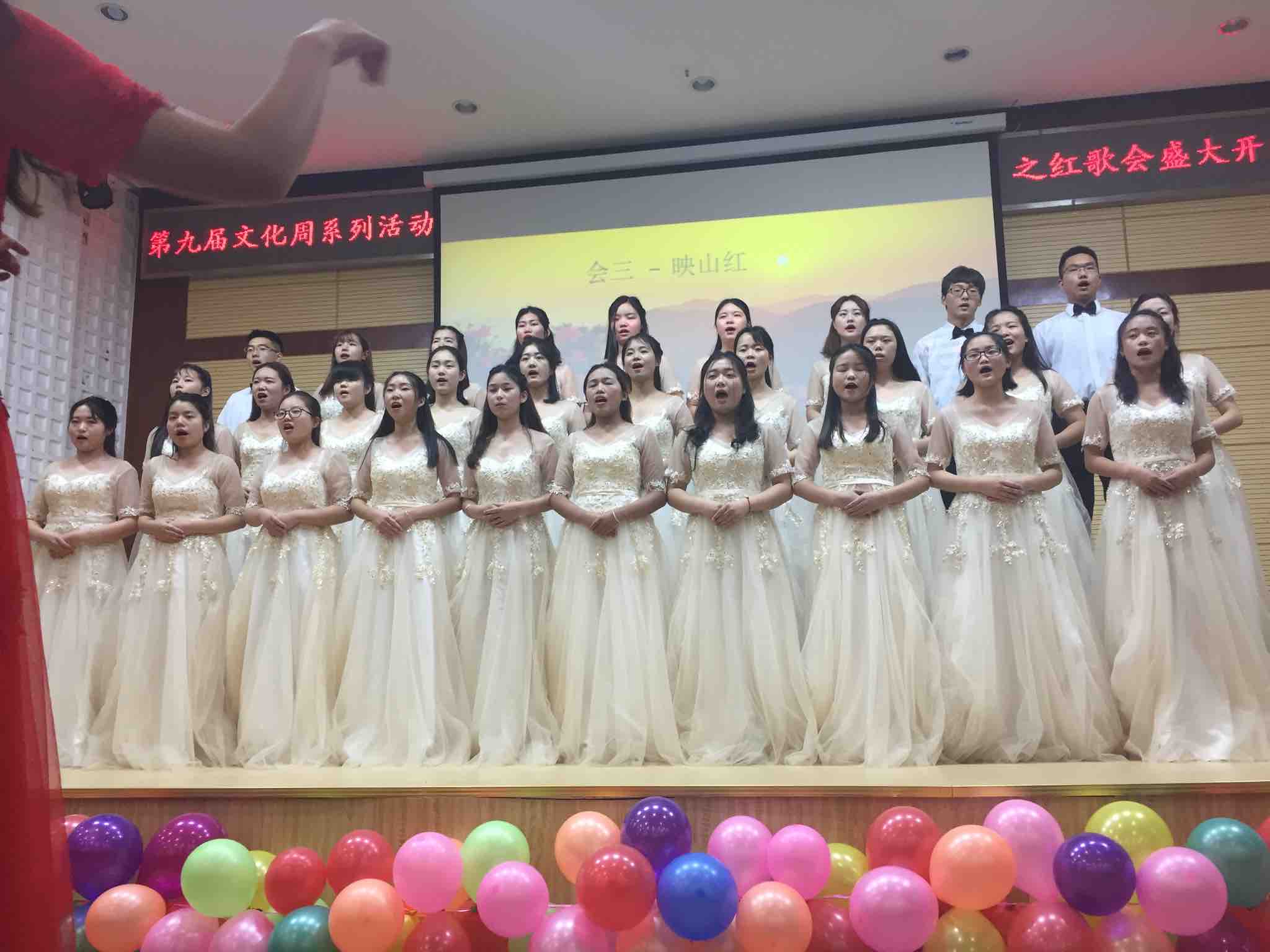 2017年5月24日晚,工商信息学院第四届红歌会盛大开幕。作为我院文化周系列活动的重头项目之一,红歌会具有弘扬革命精神,培养学生爱国情怀和高尚道德情操的作用。为发扬革命精神,彰显青春风采,本次红歌会在过去的基础上进行了改良,融入了青春校园文化。主要体现在合唱曲目不再仅限于红色革命歌曲,各班级可以根据自身需要改唱富有奋斗精神,体现校园文化的歌曲(如奔跑、我的未来不是梦等)。这一改进,让本次红歌会更加富有特色,更加充满青春与活力。