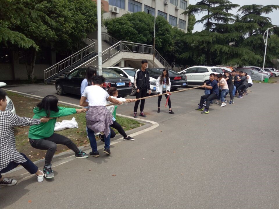 伴随着一阵阵振奋人心的呐喊声,趣味运动会的第一个项目:拔河比赛正式开始。赛前,选手们都摩拳擦掌,鼓足了劲头要在这次的比赛中取得好的成绩。比赛一开始,双方就卯足了劲,全力以赴。参赛队伍的呐喊声,场边观众的欢呼声,让整个赛场的气氛变得更加热烈。虽然体育竞技的性质决定了本场比赛只能有一个胜者,但无论是哪支队伍获胜,双方都始终坚持“友谊第一,比赛第二”的原则,比赛中公平竞争,比赛后一齐庆贺。这恰好迎合了本届趣味运动会的初衷,无论谁胜谁负,大家都是赢家,都收获了团结友好的同学关系和昂扬向上的拼搏精神。