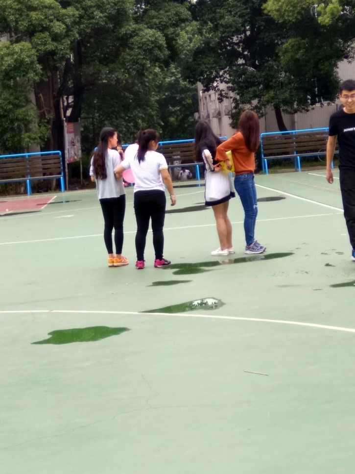 紧接着是趣味运动会的第二个重头戏:人形字母和人体拼字。这是今年新增的项目。不同于拔河、两人三足等传统比赛,该项目没有任何可供借鉴的经验,所以同学们只能通过平时在综艺节目、网络论坛上看到的相关信息来做准备。比赛一开始,同学们还有些紧张,彼此的配合间出现了一些失误。但随着比赛的进行,现场观众的热情和参赛队员的相互鼓励,让大家逐渐放松,开始全情投入到比赛中来。大家相互沟通,密切配合,一个又一个看似不可能拼出的汉字和字母难题被攻克。最后,在现场观众们的欢呼声中,比赛圆满结束。