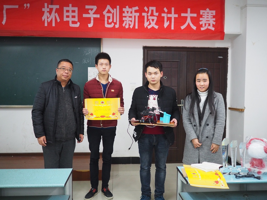 电子产品设计大赛旨在培养我校学生的创新意识、提高学生的设计能力及动手能力。本次大赛共吸引来自信息、机电、装饰和啤酒四个学院的三十七名学生,十二个小组报名参赛。今年参赛选手有70%来自15级新生,反映出新生参赛热情与参与度一年比一年高,也迫切的希望通过参赛来展示自己的能力与才华。在电信教研室指导下,由“节点工厂”电子协会完成大赛的组织和筹备工作,参赛选手们在一个月时间内完成作品选题、材料采购、作品制作、文档编写等工作,最终各组选手携带自己制作与调试成功的作品,顺利完成了今年的比赛。