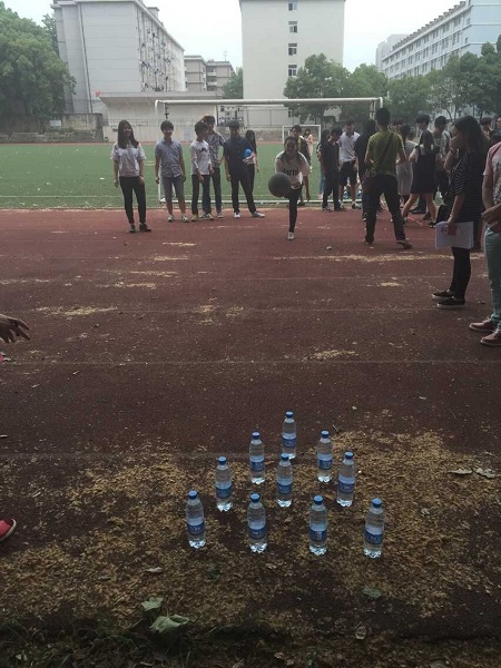 活动共有5个,其中分为团体游戏:疯狂的设计、五彩连环泡、五人四足。和个人游戏:五毛和一块、保龄球。于昨晚之前我们以做好明确的分工和人员安排,以及道具的准备,具体的时间地点安排也于昨天中午之前下发给各班,所以今天的活动举办的还是比较成功。