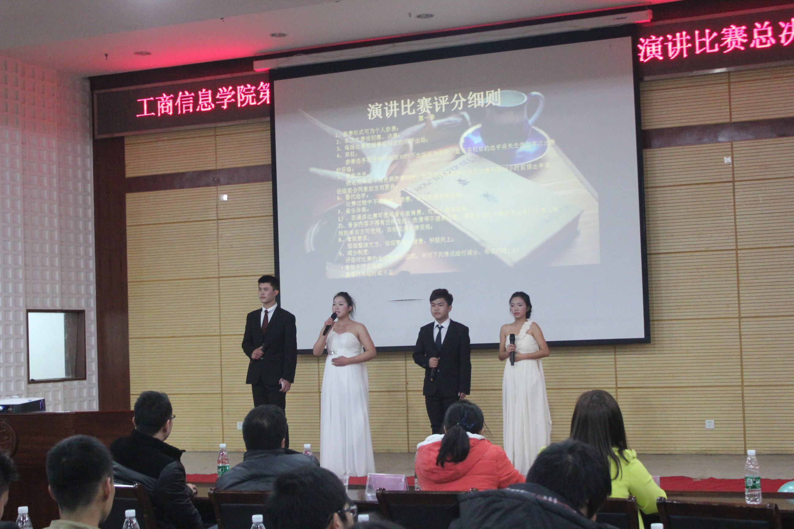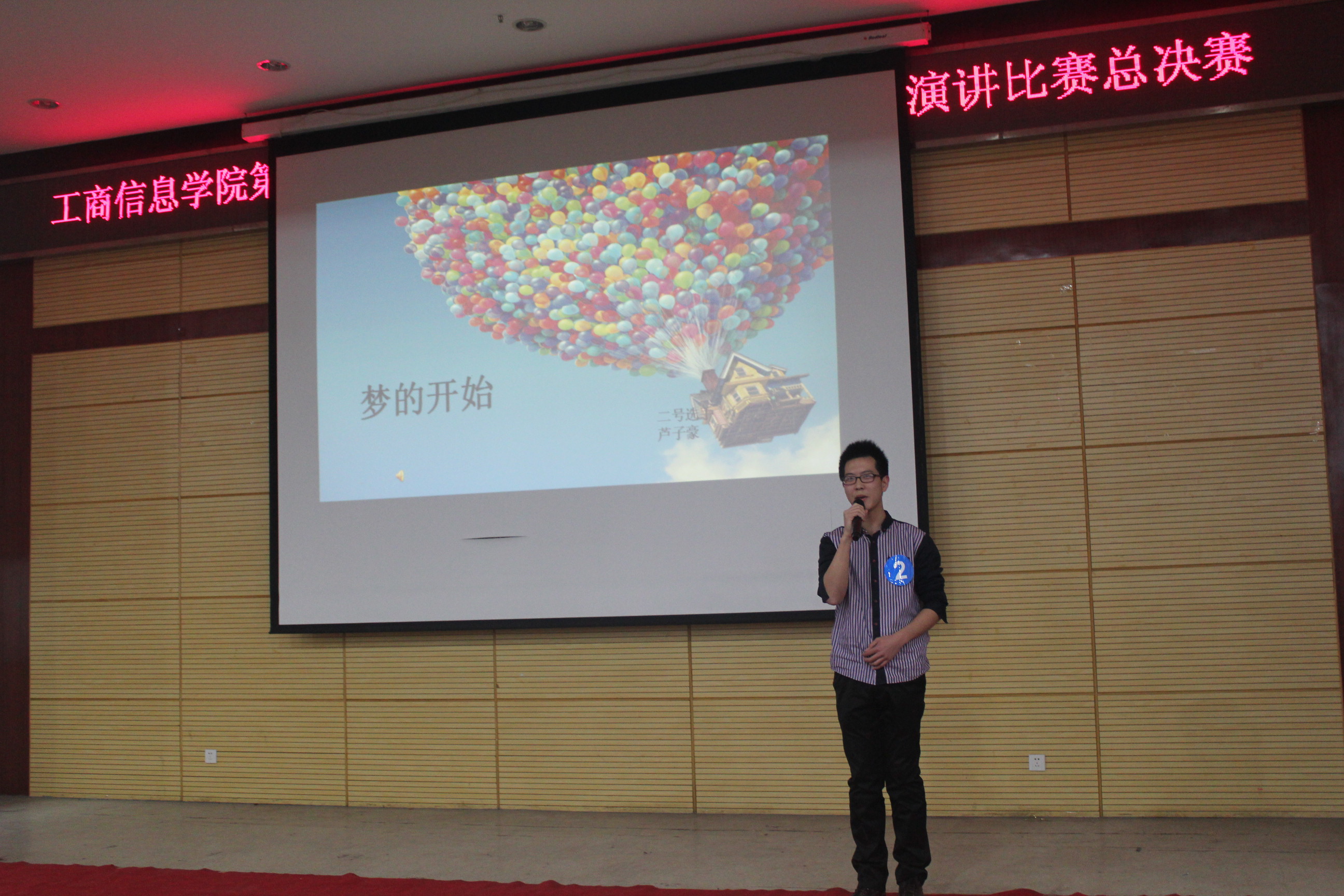 (工商信息学院14级会电3班 通讯员 魏楠)2014年12月8日晚18:00,我们整个工商信息学院的大一的学生以及老师在学术报告厅举行了第一届“我的梦 成长梦 大学梦”演讲比赛的决赛,这次决赛虽然只有10人,但竞争还是相当激烈的。
