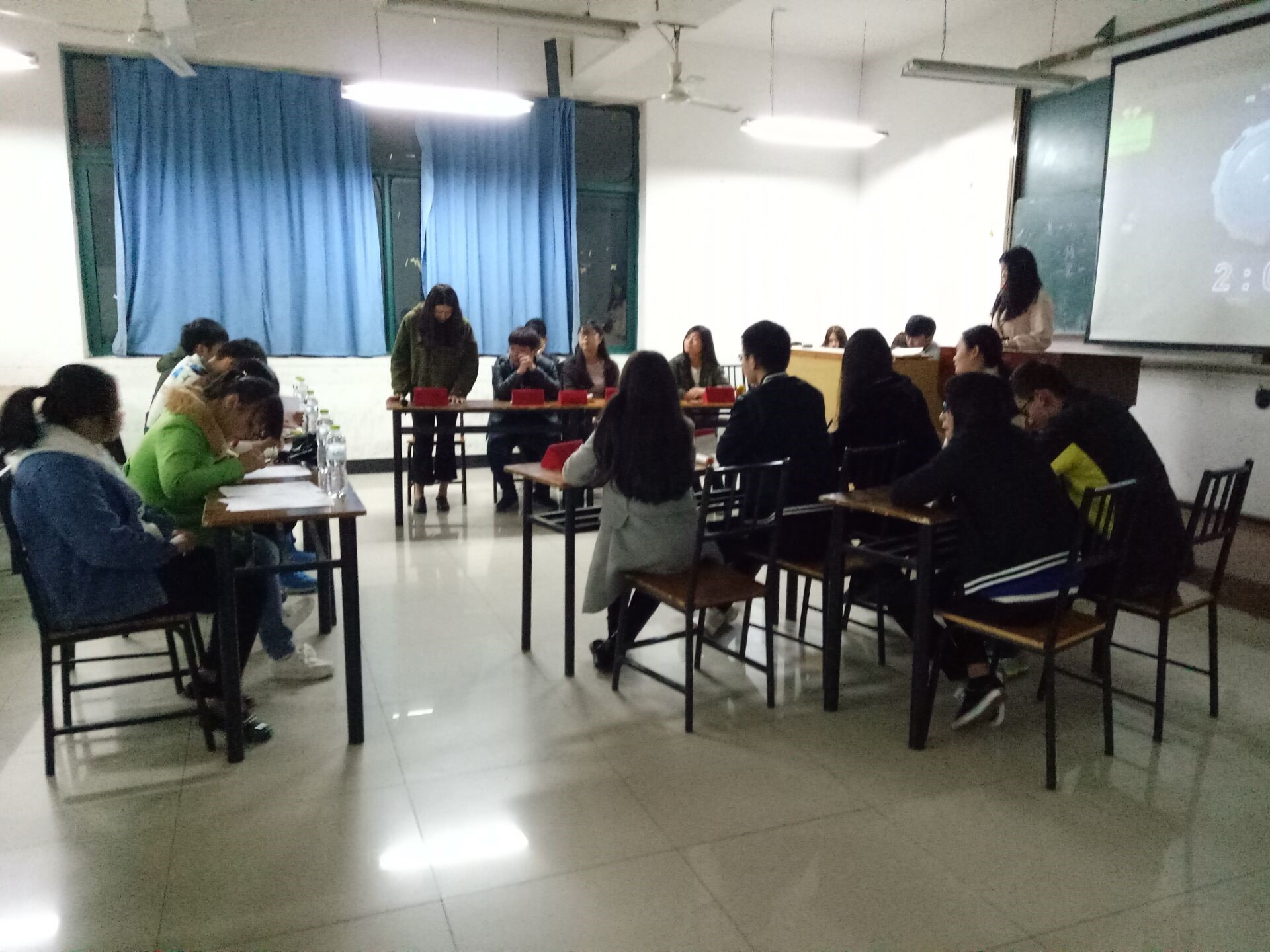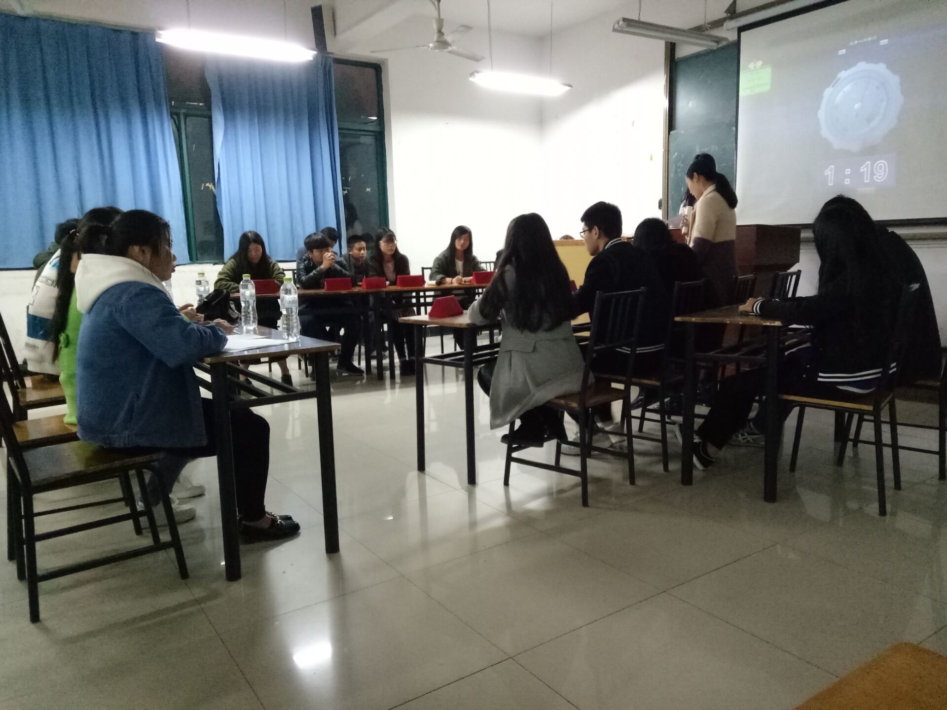 我院2016级工商信息系14个班级共同举行了一场辩论赛。每个星期都会打两轮比赛,在B303教室19:00准时开始。首先,主持人介绍了到场的嘉宾,接着