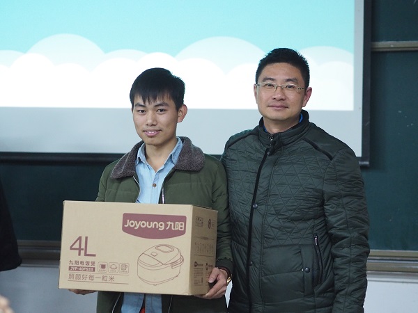 此次大赛评委有工商信息学院邱文军副院长、机电工程学院吴森林副院长、工业机器人教研室主任余攀峰老师、机电工程学院姜黎红、孙敏老师、工商信息学院赵欣、何伶俐、于海燕老师。海尔公司作为大赛赞助方,不仅提供了洗衣机、电磁炉、电饭煲等家电产品作为大赛奖品,而且指派王玉岭经理和田昌华经理作为评委参加了此次活动。两个学院共有近200名同学观摩了此次大赛。