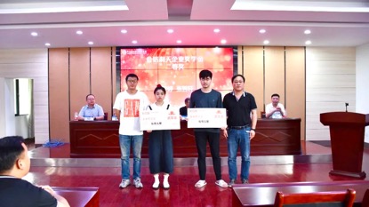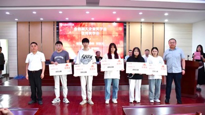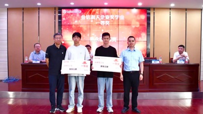 在颁奖环节,学校领导和企业领导先后为获得第二届“金信润天”企业奖学金的库爽、陈永泰等同学进行颁奖。