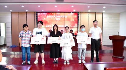 赵欣副院长与沈威经理为学生颁奖并合影
