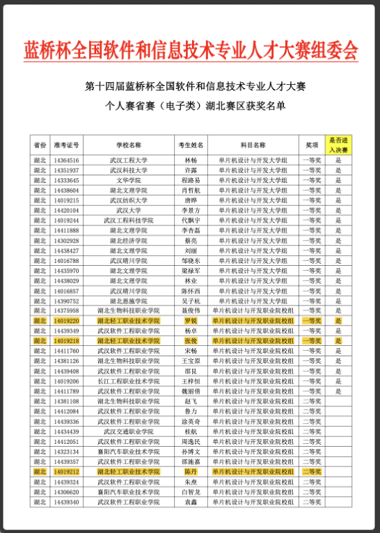 以上获奖是我校信息工程学院近年来始终贯彻“岗课赛证创”创新人才培养模式的教学成果,未来信息工程学院将继续围绕湖北省“51020”新一代信息技术和集成电路技术现代产业集群开展专业建设,坚持产教融合,为我校的高质量发展贡献自己的力量。