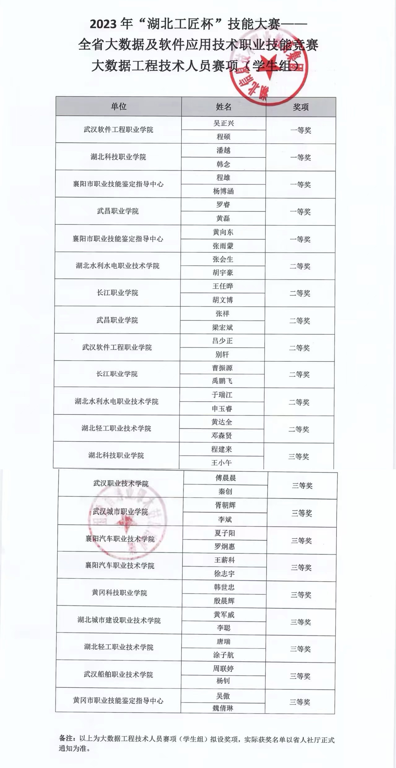 (信息工程学院 陈刚讯)2023 年“湖北工匠杯” 技能大赛—全省大数据及软件应用技术职业技能竞赛 网站设计与开发技术人员赛项、大数据工程技术人员赛项应用均于11月4日圆满结束。本次竞赛为省级二类竞赛,由武汉软件工程职业学院和武汉唯众智创科技有限公司负责承办,旨在深入实施“技兴荆楚”工程,发挥职业技能竞赛的示范引领作用,加快大数据及软件应用技术从业高技能人才的培养。