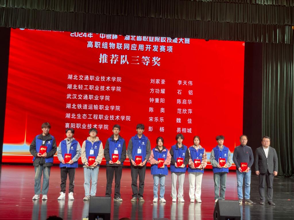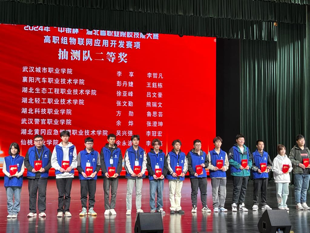 (信息工程学院 何伶俐讯)3月22日上午,2024年“中银杯”湖北省职业院校技能大赛高职组物联网应用开发赛项在湖北工程职业学院落下帷幕,经过3天的激烈角逐,我院获得推荐队获三等奖,抽测队获二等奖。