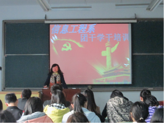 培训第一天由信息系系主任张首杰老师为团干学干上了第一节课---“学有所成,行为有方”。之后第二天由我系团总支书记蔡淦及学生会主席田响对学生会各个部门的职能进行的讲解,第三天则由我系学工主任宋老师为全体学生会干部及12级各班班干部进行培训,明确学生干部应具备的条件及纪律。最后一天全体学员互相交流的工作经验。