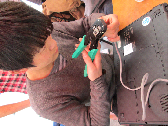 (图为志愿者帮同学修理网线)