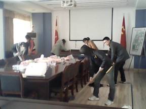 (第一组打扫会议室) (打扫完毕后,干净整洁的会议室)