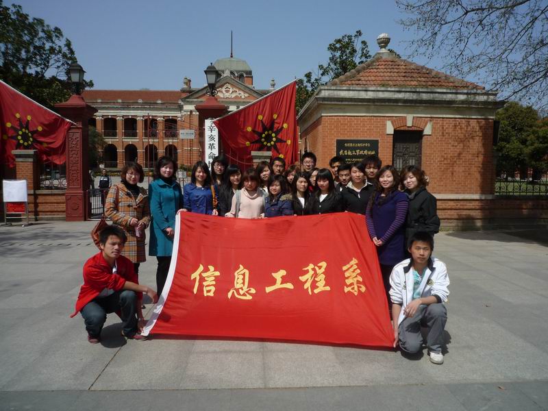 “踏访辛亥遗址 铭记流芳历史”, 为了更好地理解十七大精神,进一步提高支部的凝聚力,构建和谐支部,加强支部党员的爱国主义教育,信息工程系学生党支部全体党员老师和学生培养考察人员在支部书记宋虹老师的带领下于2010年3月26日参观了武汉辛亥革命武昌起义纪念馆。