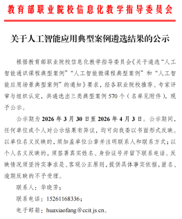 此次案例成功入选,是我校坚持产教融合、数智赋能教学改革的重要成果,充分体现我校在专业建设、课程创新、教师教研能力等方面的扎实积淀。未来,我校将继续以人工智能技术为抓手,深化教育教学改革,打造更多优质教学案例与精品课程,培育更多适配集成电路产业发展的高素质技术技能人才,为职业教育数字化转型贡献力量。