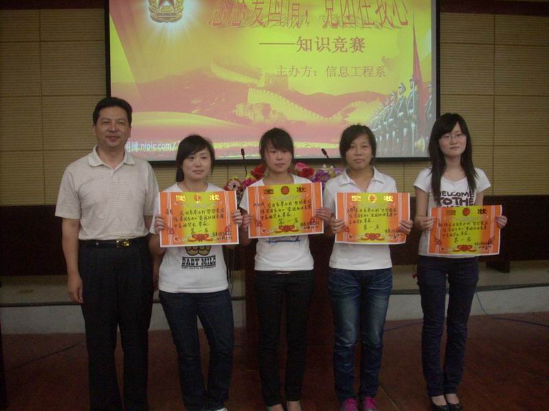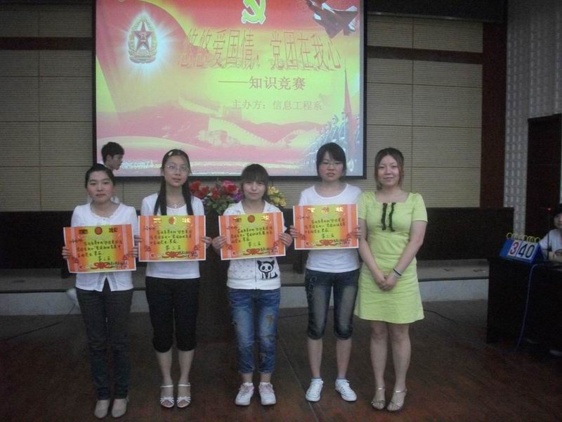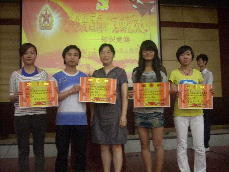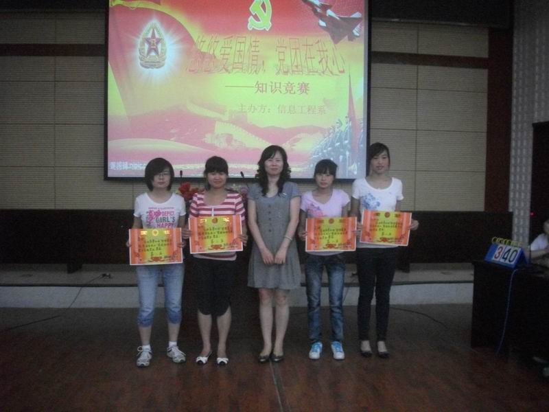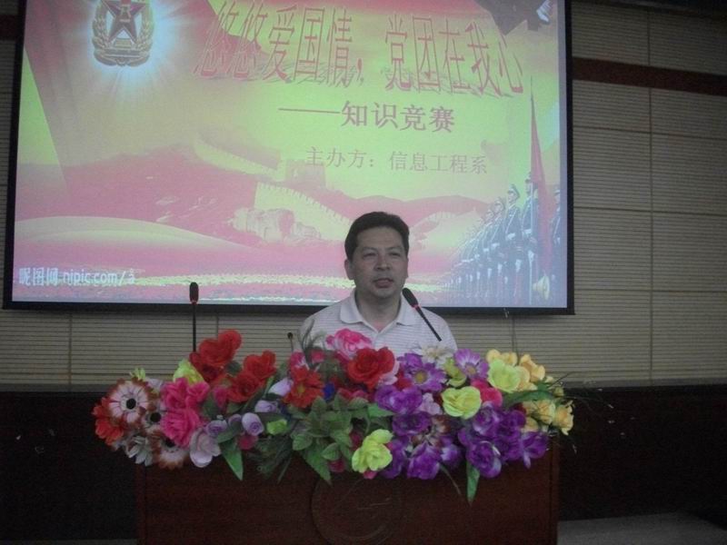 讯)为纪念建党九十周年之华诞,今天下午在学术报告厅举行了由团总支组织部主办的“悠悠爱国情、党团在我心”党团知识竞赛总决赛,我院党委徐坤副书记、信息工程系张首杰主任、系学工办宋虹主任、辅导员欧阳老师及全体班主任老师观看了这场激烈的知识竞赛,同时我系还诚邀了院团委、协会代表和各兄弟系部代表一起观看!