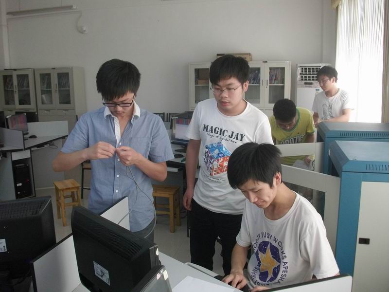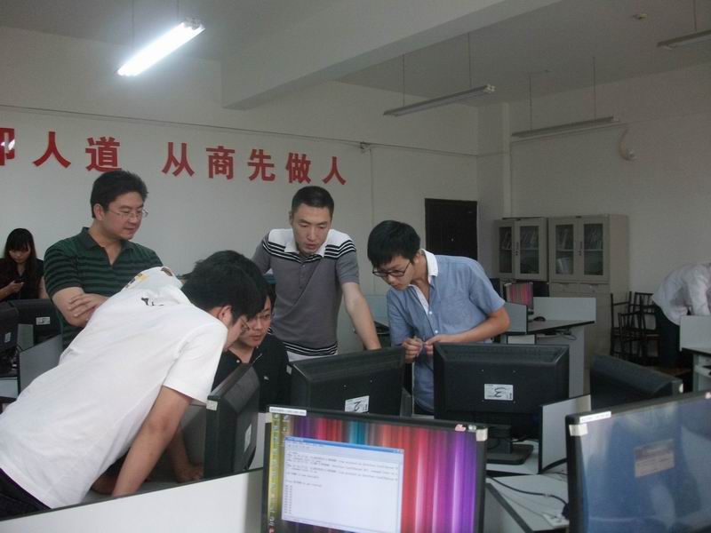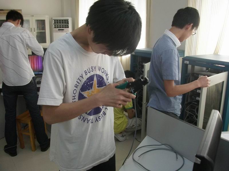 下午2点30分在教学楼C302举行了一场网页制作技能大赛,11日下午2点30分,局域网技能大赛在教学楼B501开展。赛时,信息工程系计算机教研室主任戴远泉老师学工主任宋虹老师亲临观看指导。赛场上选手们认真完成自己的作品,同时信息系章锋老师,丁丽老师,程宁老师和邱文君老师在现场观看了选手们设计网页的全过程和制作水晶头的实际操作以及局域网组建。并给予选手们一定的提示和指导。赛后专业老师们都认真的观看选手们的作品并给予点评和严格审核。最后由09网络班张峰,伍雨晴 ,刘宏恋组员获得了网页制作的第一名。