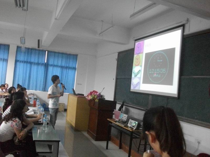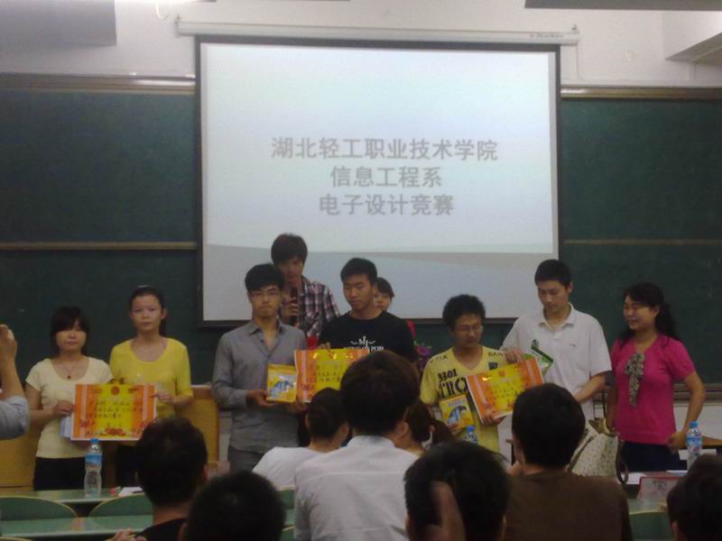 本次大赛面向我系09级和10级的电信专业同学,共有来14组作品参赛,作品中有实用的简易计算器、时尚的音频感应灯、华丽绚烂的光立方等等。各团队结合PPT演示,充分联系生活实际,用生动活泼的语言向在场的评委及观众展示了自己产品的制作原理、功能以及制作过程,并现场演示了产品的功效。