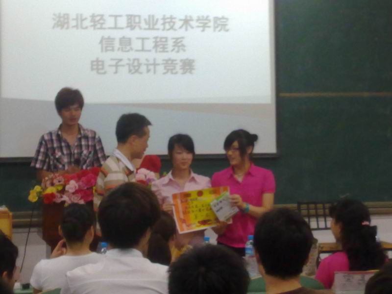 经过激烈的角逐,最后由09电信班张思琴、杨小莉小组的“酷炫感应盒”摘得桂冠;09电信李小鹏、熊雷的作品“8*16点阵显示屏”和刘功武、沈志阳的作品“光立方”屈居第二名;09电信朱能文、徐军的作品“音频闪光灯”、尹亚辉、柳艳莉的作品“神奇魔幻摇摇棒”以及孙班、李佳的作品“简易计数器”获得第三名。09电信的肖瀛、许如婷的“激光竖琴”斩获最佳人气奖;10电信的夏雅、张俊兵、王文杰虽然是大一新生,但是他们的制作的“霹雳闪光灯”得到了评委的一致认可,荣获最佳创意奖。