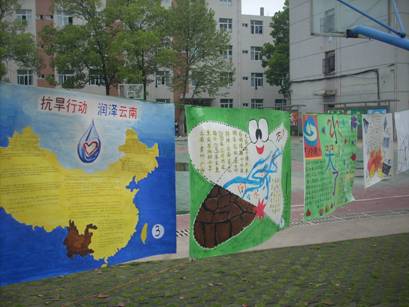 中午,由我系同学亲手制作的30幅手抄报作品在校园中展出,倡议我校同学为西南旱情做出自己应有的贡献。