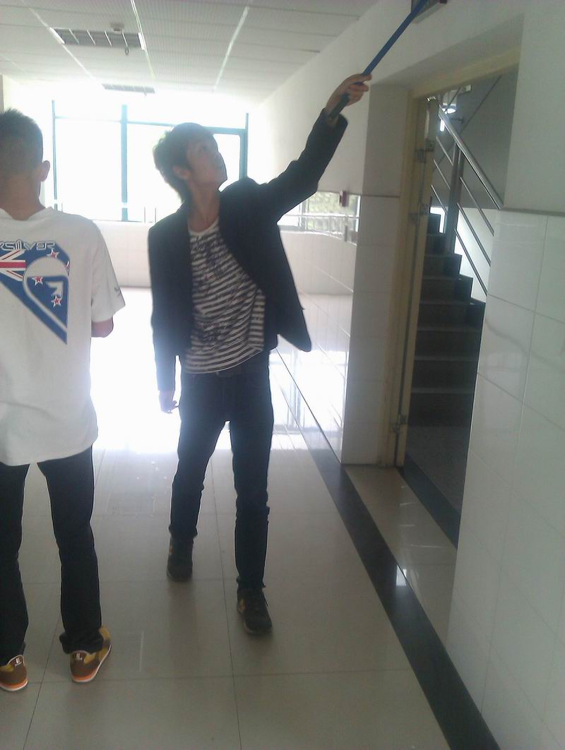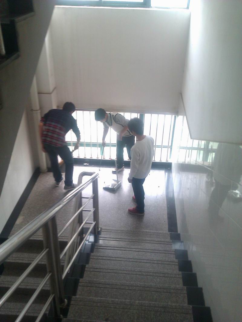 (打扫教学楼,重点是天花板、转角楼梯层等平时很难打扫的死角)