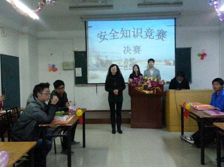 在我院“安全文明月”拉开帷幕之际,2012年11月27日晚七点在A509教室由信息工程系宿卫部、安全部共同举办的“安全知识竞赛”决赛开始了。在初赛中经过激烈的角逐,剩下了五个班级代表队,将在今晚的比赛中一决高下。参加此次活动的嘉宾有信息系学工主任宋虹老师、信息系辅导员林文冲老师,各班班主任梁倩老师、涂荣老师、吴飞燕老师、李春英老师,以及信息系团总支学生会副部级干部前来为各班参赛选手加油助阵。