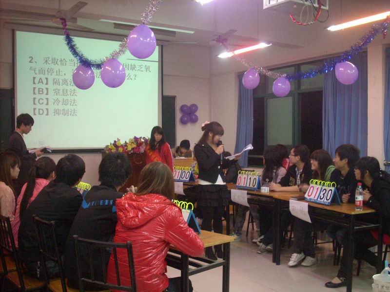 为配合我院“安全文明月”活动的展开,我系于今晚7点在A505教室举行了安全知识竞赛决赛,由初赛中脱颖而出的六个班级代表队在此展开了激烈的角逐。