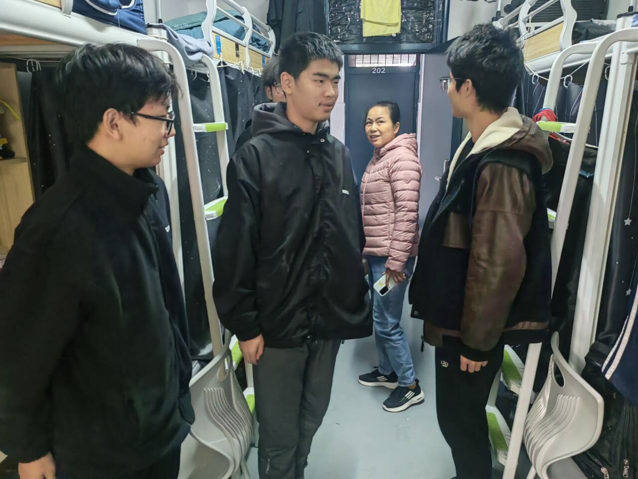 各班主任检查宿舍卫生的同时,也向同学们进行了亲切的问候,近期流感严重,叮嘱同学们穿衣注意保暖,勤开窗户通风;同时关心同学们的财产安全和身心健康,强调贵重物品上锁、外出勿忘锁门、与舍友友好相处;建议同学们合理安排学习计划,学会平衡学习和生活;最后对于同学们提出的疑问和反映的情况也进行了解决。
