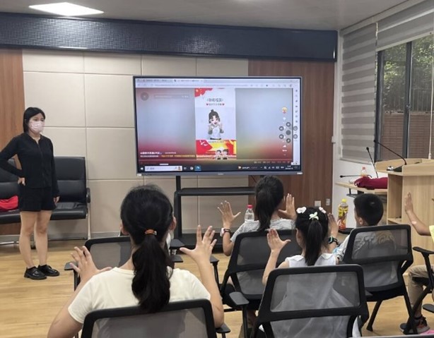 为确保志愿教育服务活动质量,志愿者们提前进行了关于此次的课程活动的安排。小朋友们在志愿者大姐姐们的带领下到达了活动地点,学习了歌曲《歌唱祖国》和手势舞,小朋友们开始的时候积极性不高,但在志愿者大姐姐们的带领下后,也慢慢融入到学习当中,气氛十分融洽,欢乐不断。小朋友们在最后的排练中表现良好,本次活动也在2023年6月18日圆满完成。