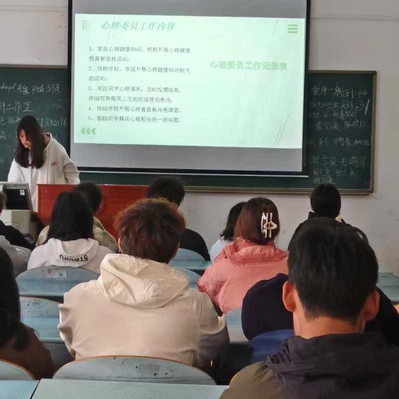 培训会上,院系心理健康教育工作专干以心理委员工作职责为主题,详细介绍心理委员的工作内容,让各班心委了解了大学生心理健康协会的组织架构与“学校—学院—班级—宿舍/个人”四级预警网络体系的各个层面,了解了我校相关心理健康教育工作开展的情况。