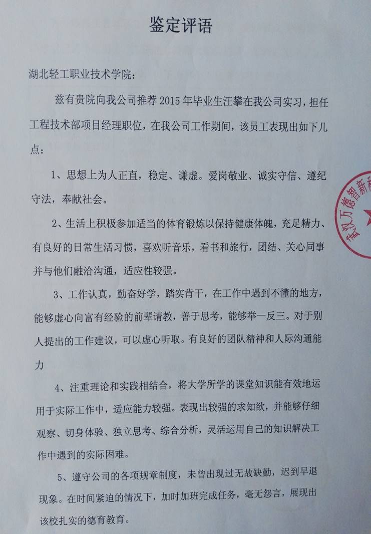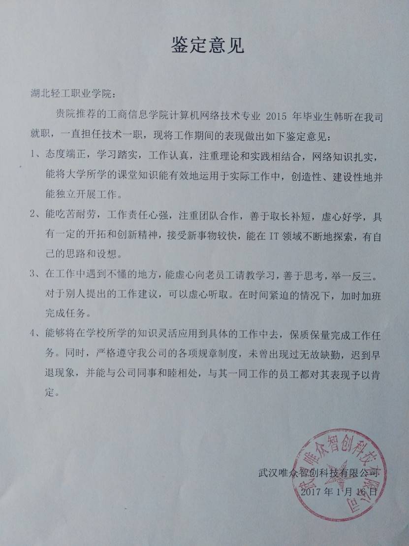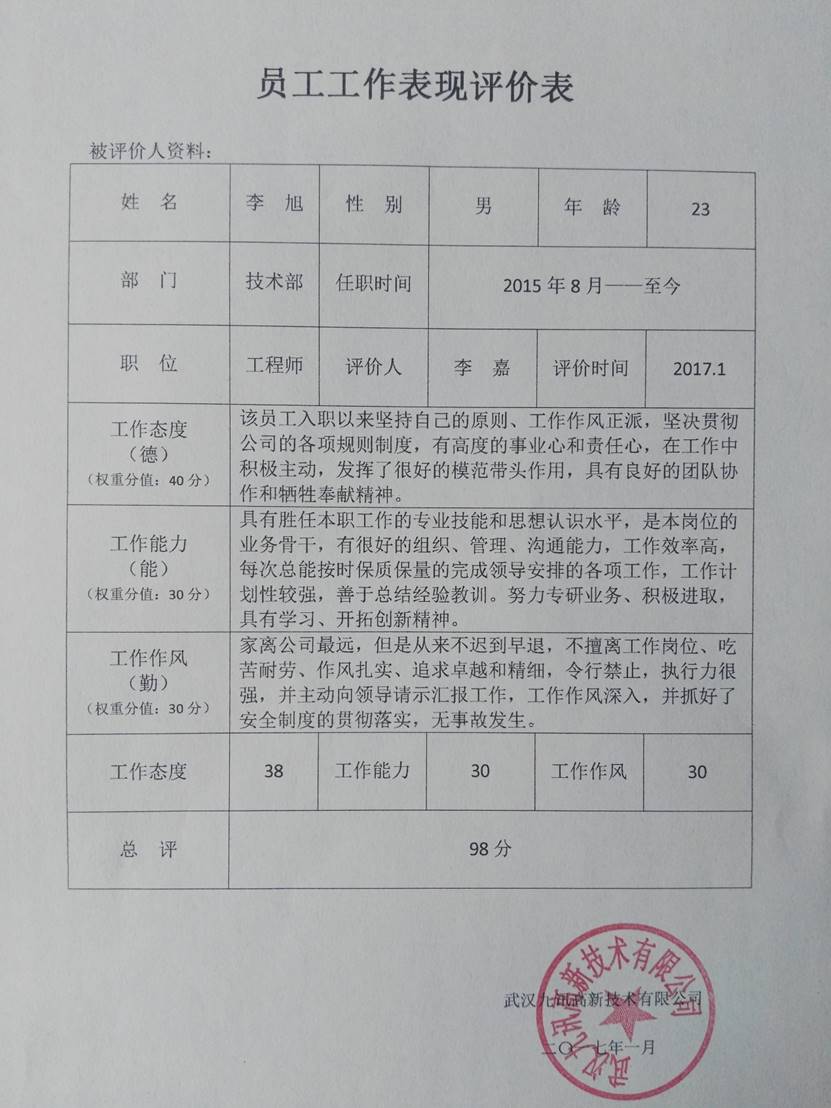 用人单位评价